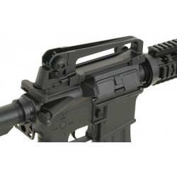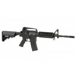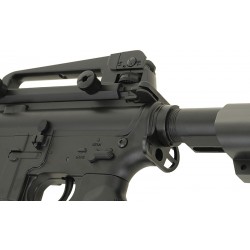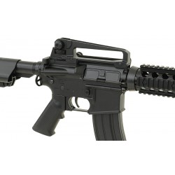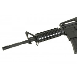 Replica of a new series of low-budget rifles - CYMA. The rifle offers the same things as metal parts (eg, body, handguard, front / rear sights) , buffer tube, flash hider, magazine) allowed reduced the price. Now, every beginner will be able to afford the ASG with a reliable replica for a lower price.