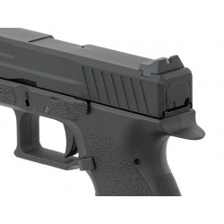 The GLOCK 19 is a compact version of the GLOCK 17. The barrel and frame of this airsoft version are shorter, but the licensed replica stands up well next to its big brother. It’s almost exactly as heavy thanks to the heavy metal slide, which considerably enhances the pistol’s feel.The adjustable hop-up gives the pellets a backspin for stable flight over...