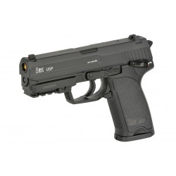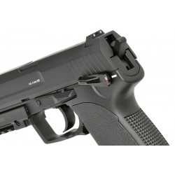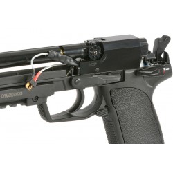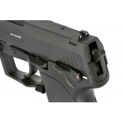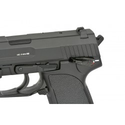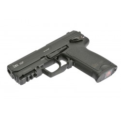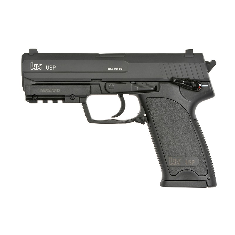 Refreshed version of the popular CYMA electric pistols, produced under **Heckler & Koch (HK) license** granted by **Umarex**. The replica retains the classic AEP appearance while receiving significant internal upgrades that increase reliability and performance. In addition, it is fitted with a **built-in MOSFET system**, improving electronics protection and speeding up trigger response.